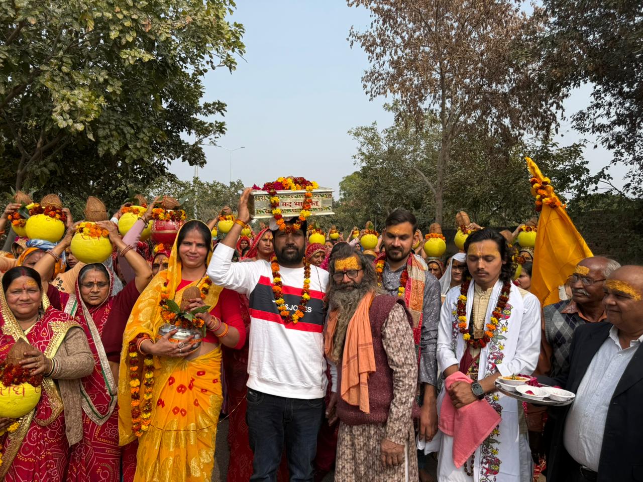 जयपुर 01 फरवरी 2026 श्री मंगलेश्वर महादेव मंदिर नारायण विहार मानसरोवर, जयपुर में चतुर्थ संगीतमय श्रीमद् भागवत कथा ज्ञान यज्ञ का भव्य आयोजन किया जा रहा है। आज मंदिर प्रागण से 5 किलोमीटर में होकर कलश यात्रा निकाली गई। जिस में 151 कलश लेकर महिलाओ ने नाचते गाते और बजाते हुए बढ़चढ़ कर हिस्सा लिया। कलश यात्रा में लगभग पांच सौ से भी अधिक लोगो ने हिस्सा लिया। यह धार्मिक आयोजन 1 फरवरी 2026 (रविवार) से 7 फरवरी 2026 (शनिवार) तक प्रतिदिन आयोजित होगा।